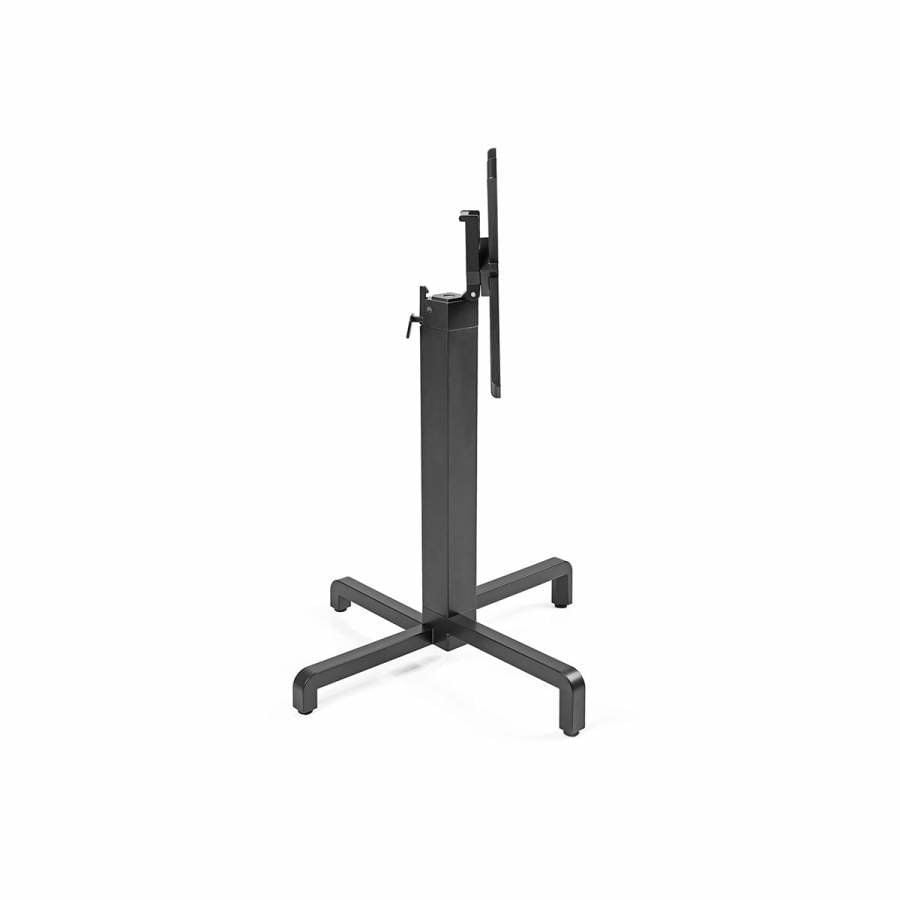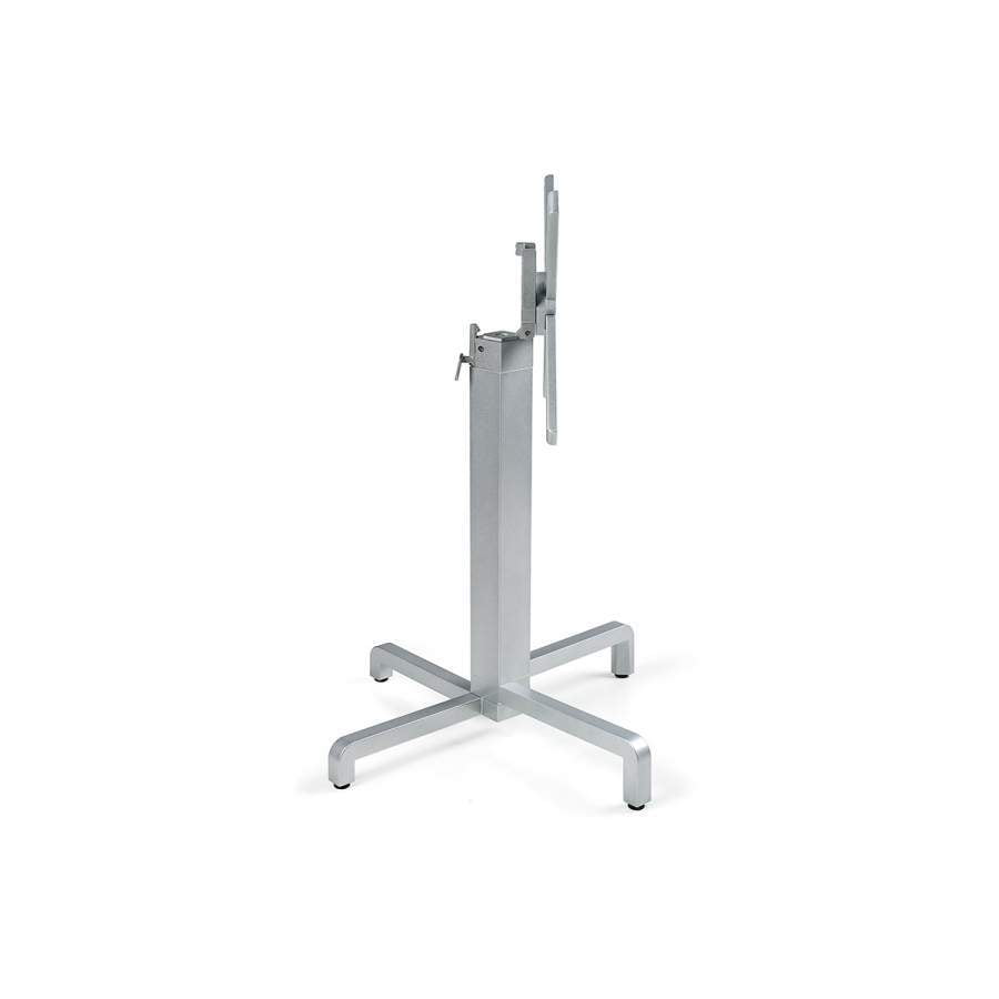 Base for tilting-top table. Coated aluminium. Stackable horizontally. Adjustable height feet. To be used with tops dimensions 60 x 60 – 70 x 70 – 80 x 80 cm.